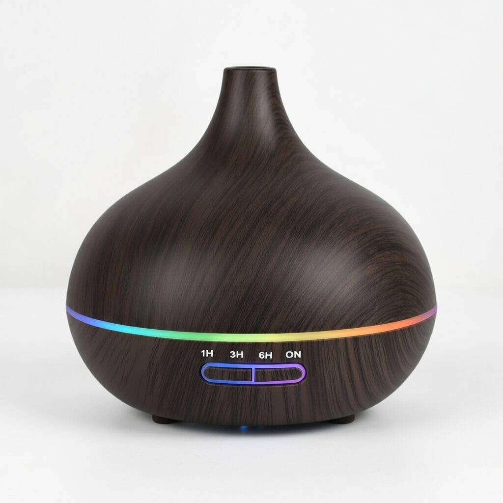 Grand réservoir 550ml, télécommande incluse, 7 couleurs LED ambiance, finition bois naturelle